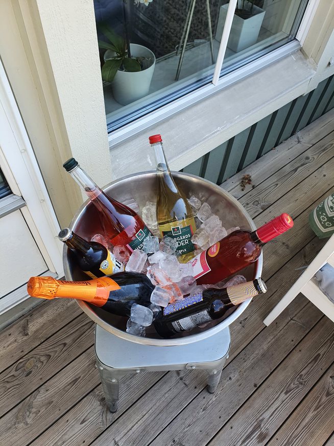 Det var så varmt så vi fick leta på champagneskålen och fylla den med is och dryck.